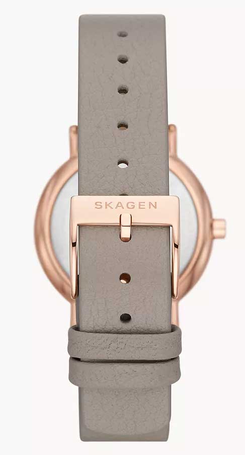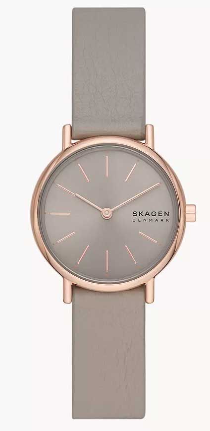 This 30mm Signatur Lille features a grey sunray dial, stainless steel case, two-hand movement and grey LiteHide™ Leather strap. Watch strap is interchangeable.